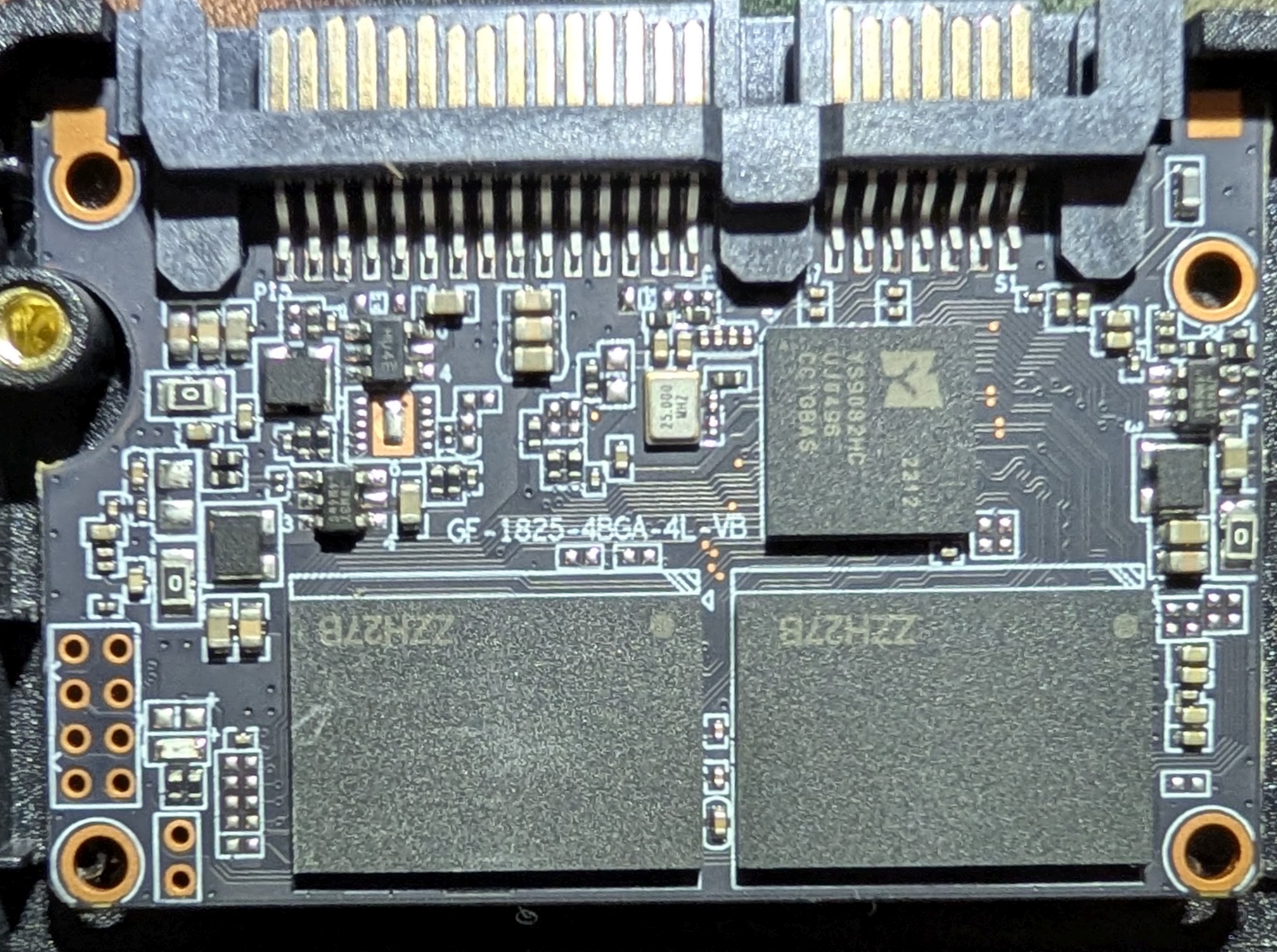 In the PCB shot, this drive has its "SeaShield" rubber housing removed but it's replaced in the top shot. Seagate knew that most HD damage was done on the route between factory and user so they added the rubber casing to protect the disks from damage. It worked; With a much lower failure rate than other vendors, Seagate were able to drop prices on most of their range.